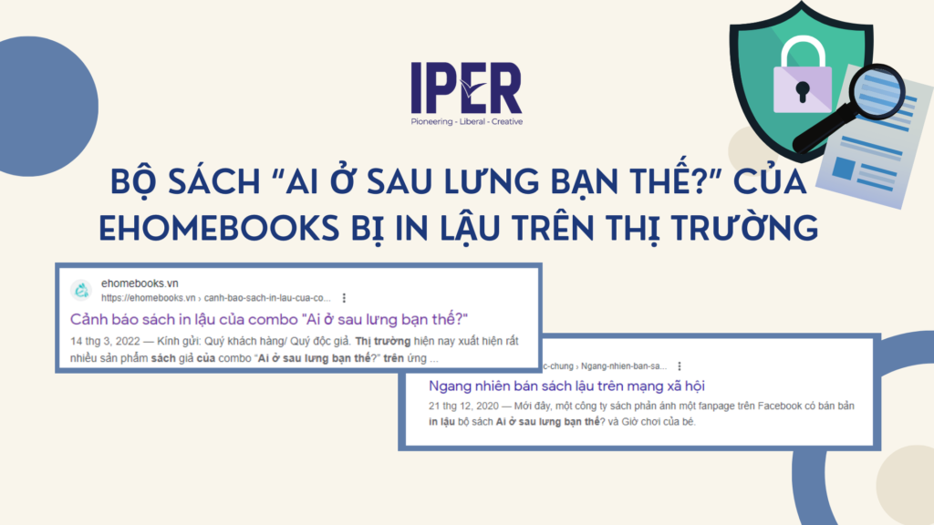 GÓC NHÌN IPER CÁC TRƯỜNG HỢP VI PHẠM BẢN QUYỀN SÁCH VÀ NHỮNG HẬU QUẢ ĐỂ LẠI Tại Việt Nam tình trạng vi phạm bản quyền sách diễn ra một cách phổ biến và rất khó phát hiện. Nhiều trường hợp vi phạm nhưng chưa được xử lý một cách triệt để, thời gian xử lý kéo dài gây ảnh hưởng đến quyền của người bị xâm hại, ý thức và hiểu biết của người dân. IPER xin được liệt kê một số trường hợp vi phạm bản quyền sách dưới đây.